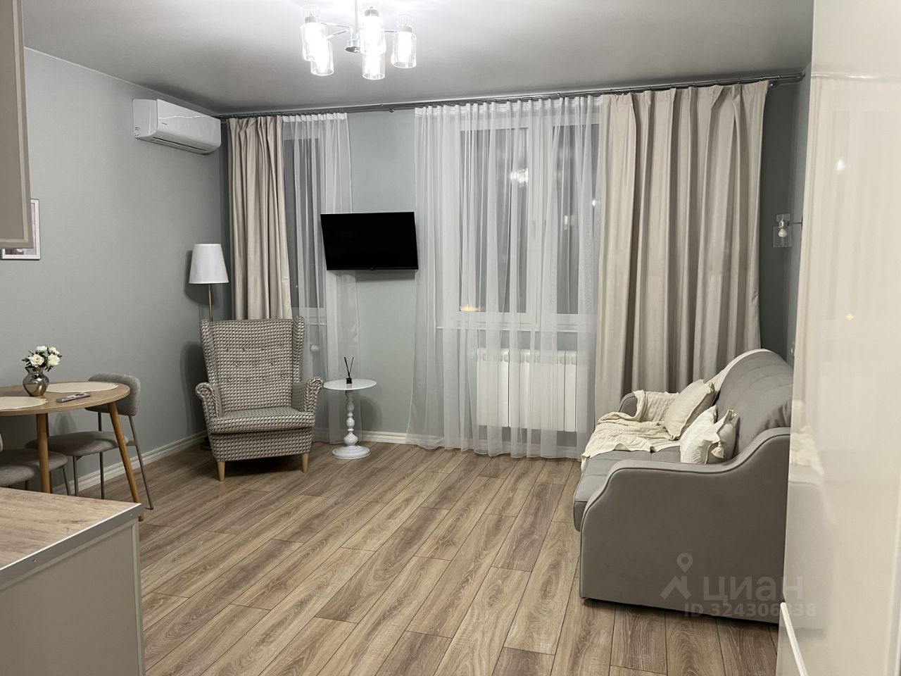 В квартире выполнен дизайнерский ремонт, который создает атмосферу уюта и современности. Пространство продумано до мелочей: на кухне и в комнате установлена стильная мебель. К вашим услугам вся необходимая техника — кондиционер, холодильник, телевизор и стиральная машина. В ванной комнате установлена душевая кабина. Много мест для хранения вещей.