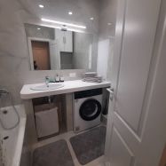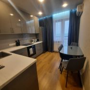 Сдается на длительный срок великолепная видовая квартира после евроремонта, сделанного для себя (для детей, которые поступили и уехали на учебу в другой город). Ремонт выполнен из качественных строительных и отделочных материалов, есть разные варианты подсветки во всех помещениях. Квартира оснащена всем необходимым для полноценной, качественной жизни, куплено все новое, от посуды до подушек. В квартире установлены два кондиционера, встроенная кухня с полным набором бытовой техники: плита индукционная, духовой шкаф с конвекцией, полноценная посудомоечная машина на 12 комплектов, микроволновая печь, чайник, холодильник, набор кастрюль, мисок и другой всякой кухонной утвари. Столешница каменная-литая как на кухне, так и в ванной комнате. Стиральная машина с функцией отпаривания. Оборудованная просторная гардеробная комната, оснащена гладильной доской, утюгом, сушилкой для белья, вешалками. В спальне расположена двухспальная кровать с ортопедическим двухсторонним матрасом 180Х200, есть подушки, двухспальное одеяло и комплект двухспального белья. Установлен функциональный шкаф-купе. Два смарт телевизора на кухне и в спальне, работают через установленный Wi-Fi. На видовой лоджии прекрасное место для отдыха с великолепным видом! Квартира сдается на длительный срок.