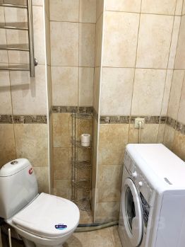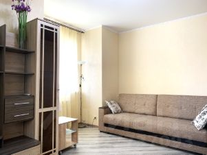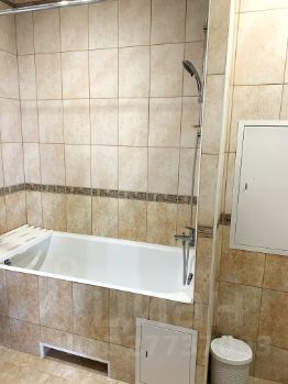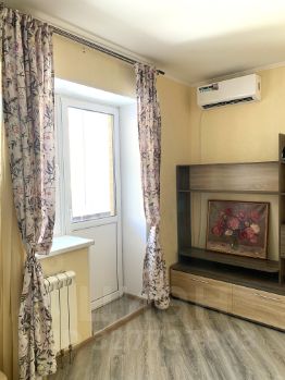 Большая кухня с бытовой техникой и обеденной зоной, просторная светлая комната с 2-мя окнами и кондиционером, оборудованная ванная комната, прихожая с огромным шкафом-купе.