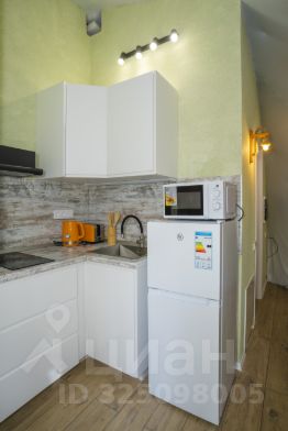 Мини-кухня с фирменным черным чайником и тостером.