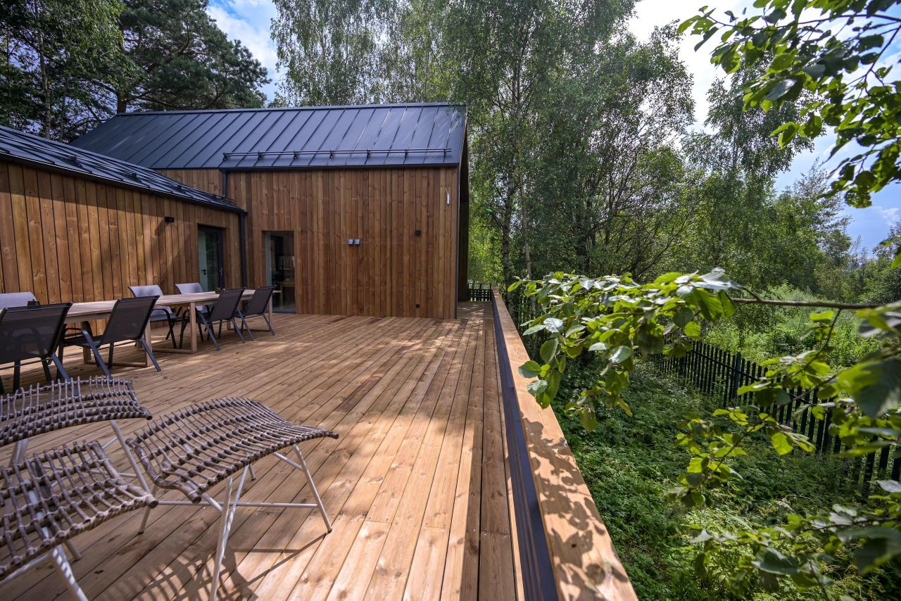 Уникальный двухквартирный дом площадью 147,5 м² с общей террасой 66 м² — идеально подойдёт для компании из двух семей или друзей, отдыхающих рядом, но с приватностью.