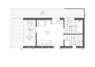 Гостиная-кухня, 1 санузел, сауна, терраса.