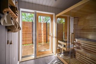 Финская сауна с панорамными окнами