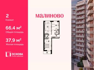 Продается 2-комн. кв-ра площадью 66,4 кв.м на 1 этаже 12 этажного монолитно-кирпичного дома в ЖК "Малиново".