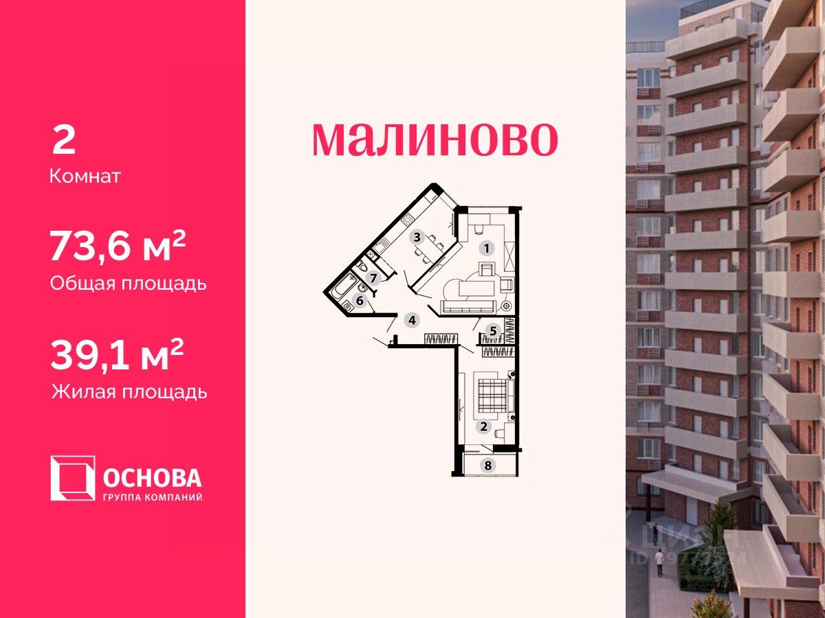 Проект ЖК "Малиново" один из 20 проектов АО ГК ОСНОВА, он представляет собой 12-ти этажный кирпично-монолитный жилой комплекс, который находится в одном из наиболее экологически чистых районов Подмосковья - Звенигороде. Комплекс расположен в микрорайоне Восточный, в 5 минутах до ЦКАД и в 42 км от МКАД. Сердце города находится буквально в пятнадцати минутах ходьбы от месторасположения ЖК.