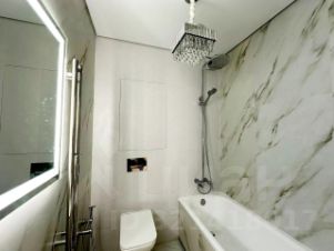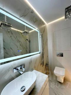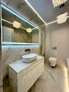 Использованы качественные материалы - крупноформатный керамогранит, на полу - дубовая паркетная доска (не ламинат!). Тёплый пол в ванной и кухне. В квартире установлены дорогие светильники известных брендов, продуманы различные сценарии освещения.