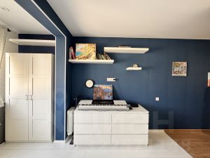 Просторная студия общей площадью 29 м² (24 м² по документам + 5 м² объединенная с помещением лоджия). Перегородка между лоджией и комнатой демонтирована, благодаря чему получилась полноценная единая зона с большим окном и хорошим естественным освещением.