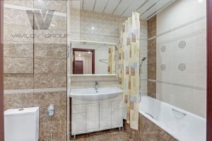 Все межкомнатные двери сделаны из натурального массива дерева, заказаны были на Уральской фабрике. Полы в обоих санузлах подогреваемые, из керамогранита. В кухне и прихожей тоже керамогранит. В комнатах ламинат. Все окна в квартире немецкие, профиль компании Рехау. Эта квартира идеально подходит для семей с детьми, где комфорт и удобство играют важную роль.