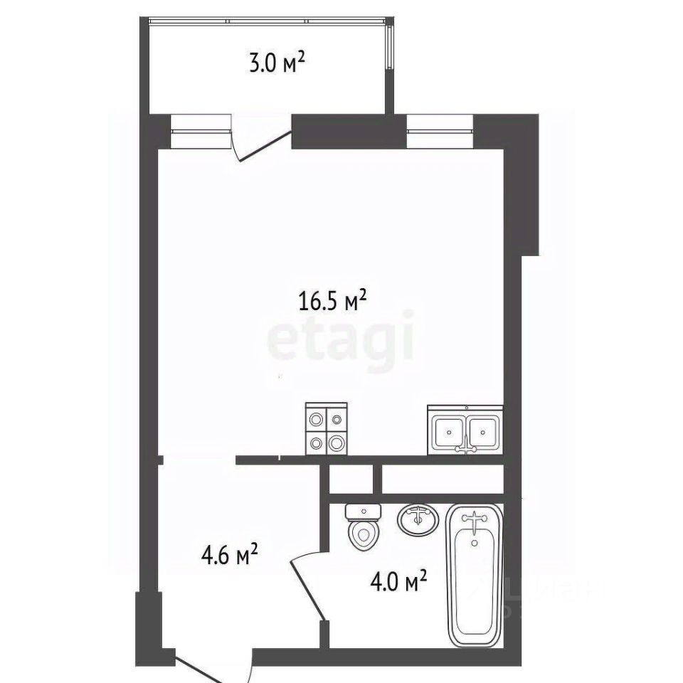 Продается стильная студия, 26 м² с балконом!