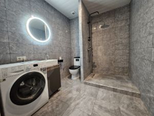 Санузел совмещенный, оформлен в стиле, соответствующем общей концепции квартиры. Лоджия обеспечивает дополнительное пространство для отдыха. Отдельная гардеробная комната, подземный паркинг! Дкп больше 5 лет, один взрослый собственник, свободная продажа, никто не зарегистрирован.