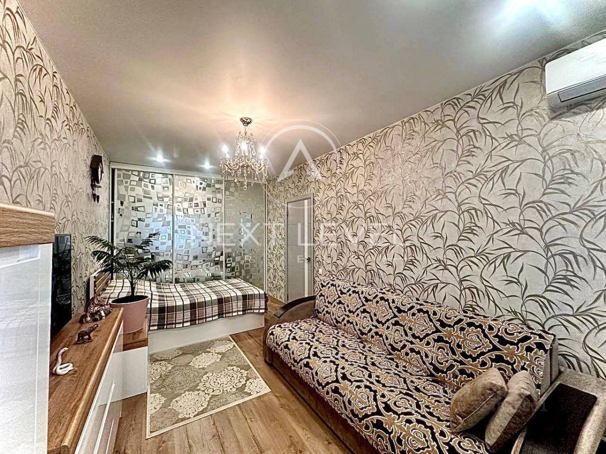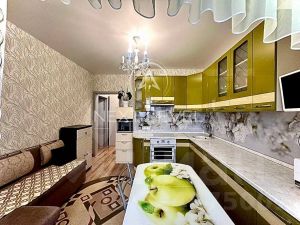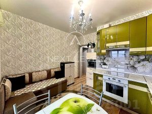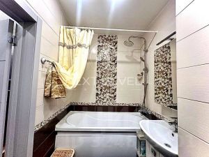 - Интерьер выполнен в современном стиле, евроремонт в спокойных светлых тонах. Санузел совмещённый. Из оставшейся мебели остаётся исключительно качественная кухонная мебель.