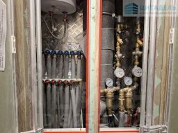 Особенностью квартиры являются два санузла: большой совмещённый с ванной и дополнительный небольшой раздельный туалет с раковиной. Установлены раздельные регуляторы температуры батарей, качественное оборудование для отопления и водоснабжения. Имеется вместительная гардеробная и удобные встроенные шкафы для хранения вещей.