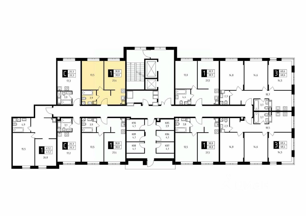 Продаётся 1-комнатная квартира в строящемся доме (Корпус 6), срок сдачи: 2-кв. 2026, общей площадью 38.80 кв.м., на 5 этаже.