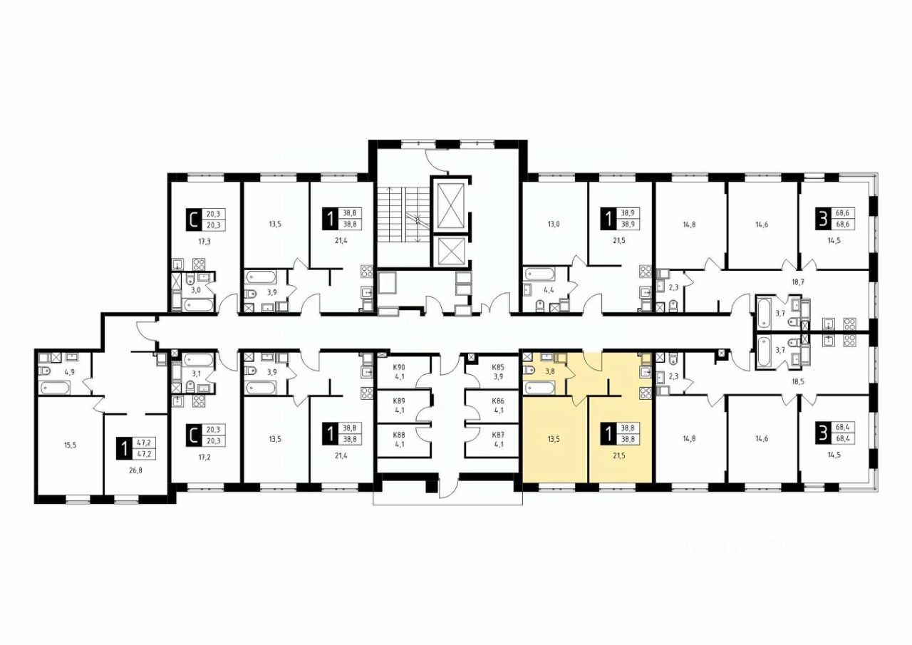 Продаётся 1-комнатная квартира в строящемся доме (Корпус 6), срок сдачи: 2-кв. 2026, общей площадью 38.80 кв.м., на 8 этаже.