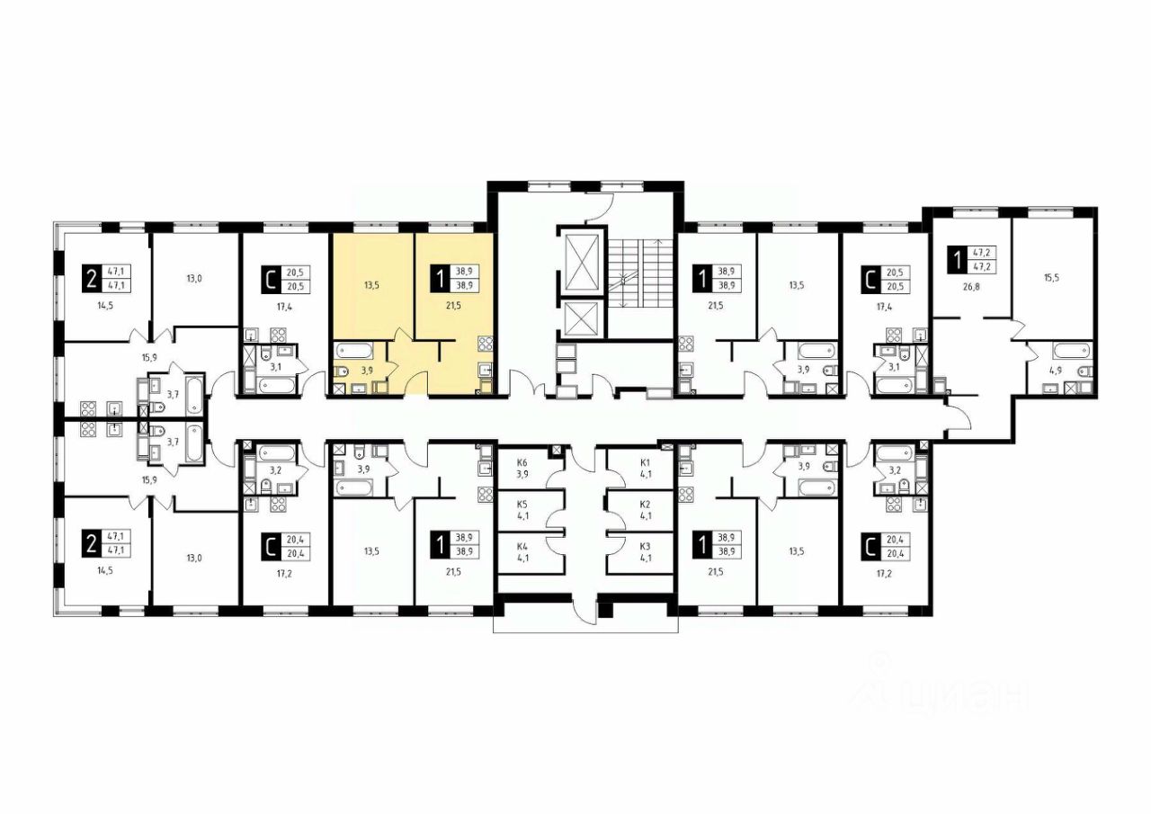 Продаётся 1-комнатная квартира в строящемся доме (Корпус 6), срок сдачи: 2-кв. 2026, общей площадью 38.90 кв.м., на 3 этаже.