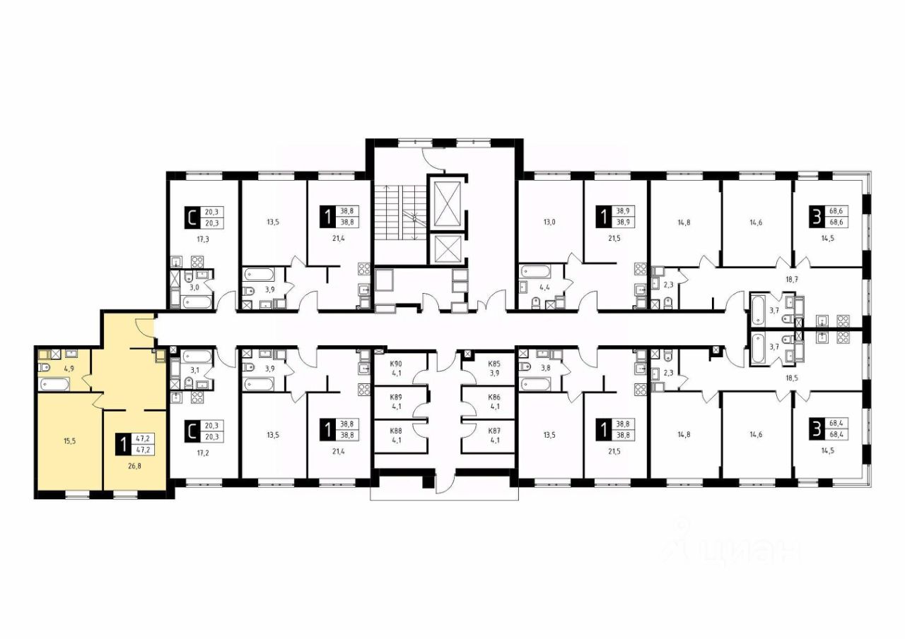 Продаётся 1-комнатная квартира в строящемся доме (Корпус 6), срок сдачи: 2-кв. 2026, общей площадью 47.20 кв.м., на 6 этаже.