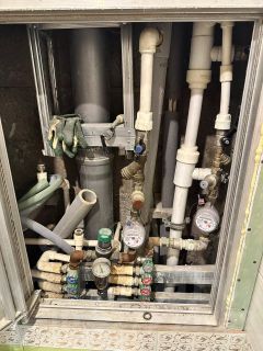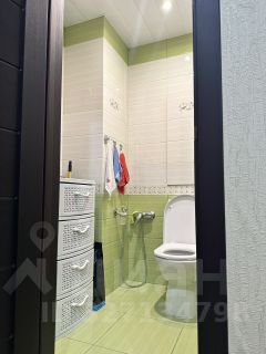 Туалет с гигиенической лейкой и есть ниша для хранения. Большая дверца с удобным доступом к инженерии, скрытая в стене, на фото всё видно. Потолок в туалете и ванной из алюминиевой рейки с точечными светильниками, стены из плитки.