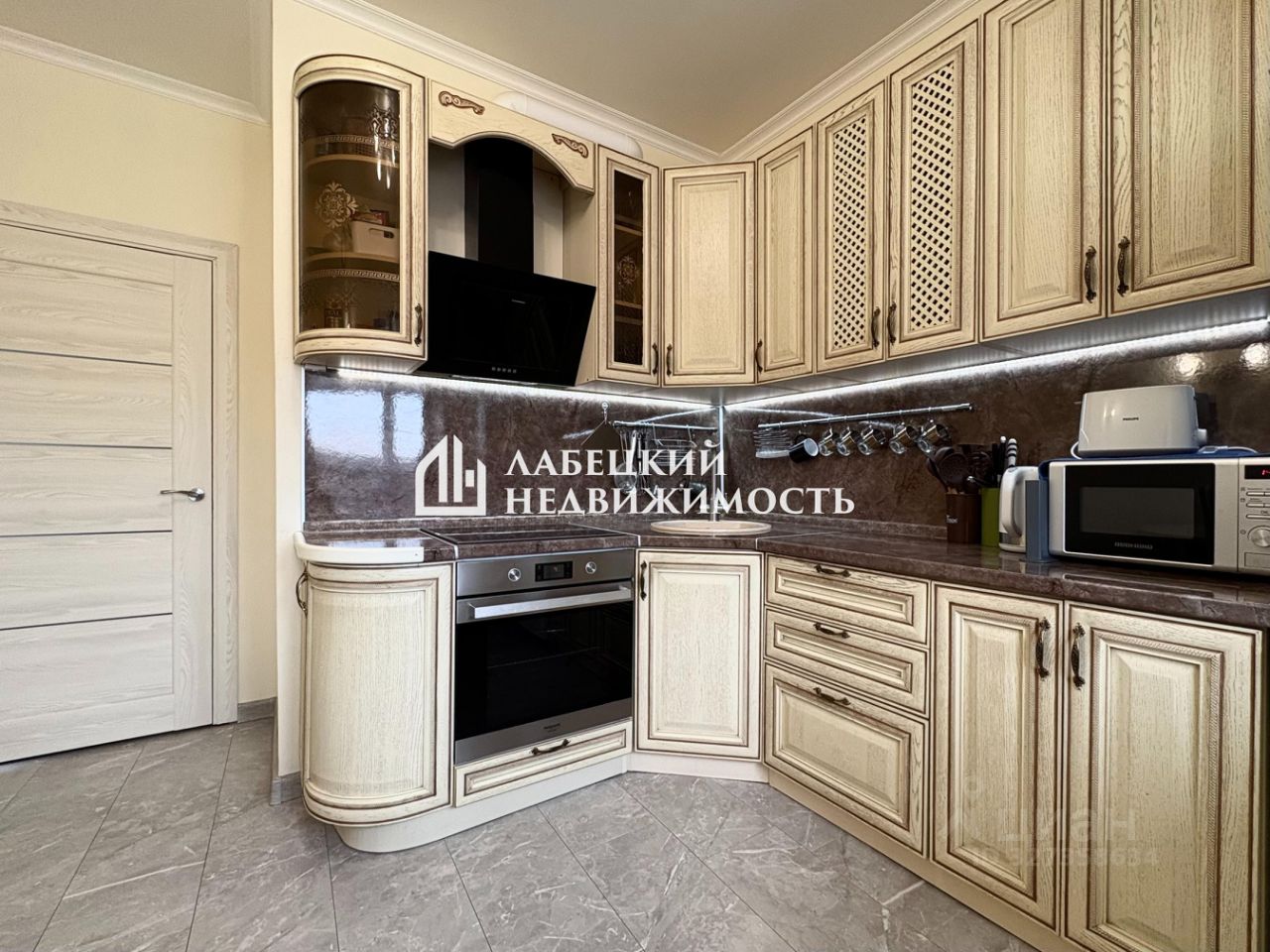-ПРОСТОРНАЯ СВЕТЛАЯ кухня, площадью 10.3м2, с кухонным гарнитуром и встроенной техникой;