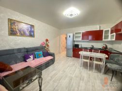 В квартире выполнен современный ремонт. Есть большой застекленный балкон. Свежий и стильный дизайн, сделан с использованием качественных материалов. Оставляем всю мебель для комфортного проживания. Так же в квартире установлен кондиционер. Квартира идеально подойдёт как для собственного проживания, так и для инвестиций. Развитая инфраструктура, современный комплекс домов, оптимальная площадь квартиры позволяют в короткий срок найти арендаторов. В квартире остаётся вся мебель. Дом оборудован системой видео наблюдения и противопожарной системой.