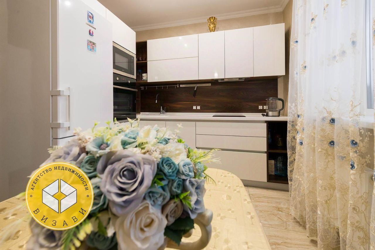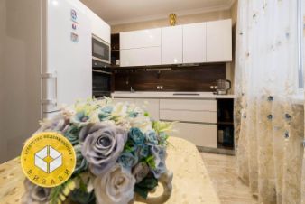 В квартире выполнен качественный ремонт. Санузел совмещённый, просторная кухня со встроенной бытовой техникой и выходом на застекленную лоджию, большая комната, оборудована гардеробная. Во время ремонта квартиры использовались современные и качественные материалы (стены - венецианская штукатурка, полы в комнате из бамбука, в прихожей, санузле и в кухне теплый пол). В комнате установлен кондиционер. Также есть бойлер. Окна выходят на запад. Вечерами в квартиру заглядывает ласковое солнце.