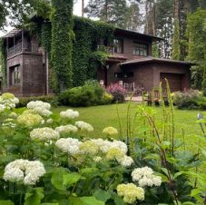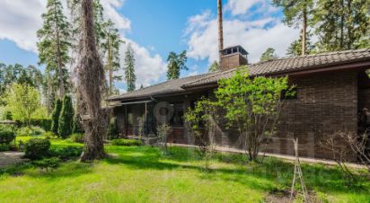 На участке с вековыми корабельными соснами и эксклюзивным ландшафтным дизайном расположен основной дом с гаражом, гостевой дом и отдельно стоящий СПА- комплекс. Респектабельное окружение, тихое место. Дом построен из кирпича в архитектурном стиле Ф. Л. Райта, концептуальными особенностями которого являются - приземистость и горизонтальная направленность линий, благодаря которым ощущается единство и гармония с природой. Планировки дома функциональные и комфортные для жизни. Ощущение пространства дарит просторная гостиная с камином и выходом на открытую террасу, предназначенную для семейных посиделок или отдыха с друзьями. Кухня, оборудованная современной техникой и дизайнерской мебелью, граничит с уютной столовой. На первом этаже есть спальня со своим выходом на участок.Широкая лестница, ведущая на второй этаж, имеет комфортный шаг ступеней. Поднявшись на второй этаж мы попадаем в библиотеку с диваном, креслами и выходом на балкон. По обе стороны от библиотеки располагаются спальни: две спальни с с/у и гардеробными, мастер- блок с двумя гардеробными, будуаром, балконом, кабинетом, с/у с ванной и душем. Цокольный этаж предназначен для отдыха, спорта и сезонного хранения вещей. В оформлении дома использованы качественные натуральные материалы, винтажные элементы декора и мебели.