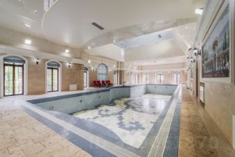 SPA- комплекс 1150 м2 с бассейном 25/6 метров, бассейном-джакузи (гидромассажем), сауной, хаммамом, зонами отдыха и семью спальнями, отдельно- стоящий гараж 179 м2 с квартирой для гостей и квартирами для персонала, крытую беседку с зоной барбекю и отдельно- стоящую кухню с комнатой для гостей.