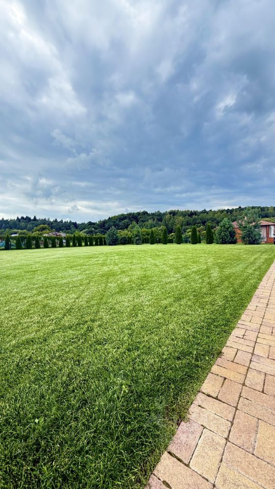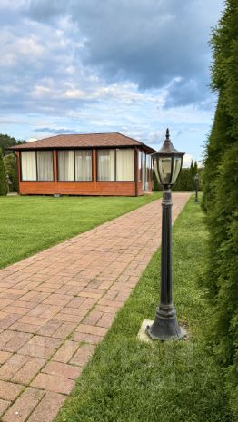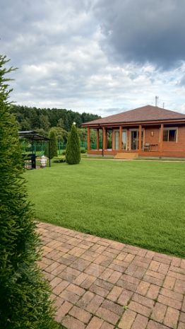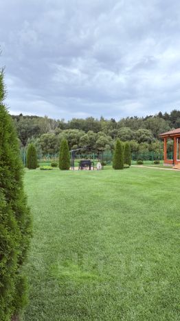 Участок ровный, сухой правильной прямоугольной формы примерно 100 на 30 метров, произведен ландшафтный дизайн: высажено более 200 деревьев, рулонный газон высшего сорта с автополивом, выложены дорожки из тротуарной плитки, а также оборудовано освещение по всей территории (каждые 10 метров). По периметру забор из 3D сетки, которую оплетает девичий виноград. Вид разрешенного использования ИЖС.