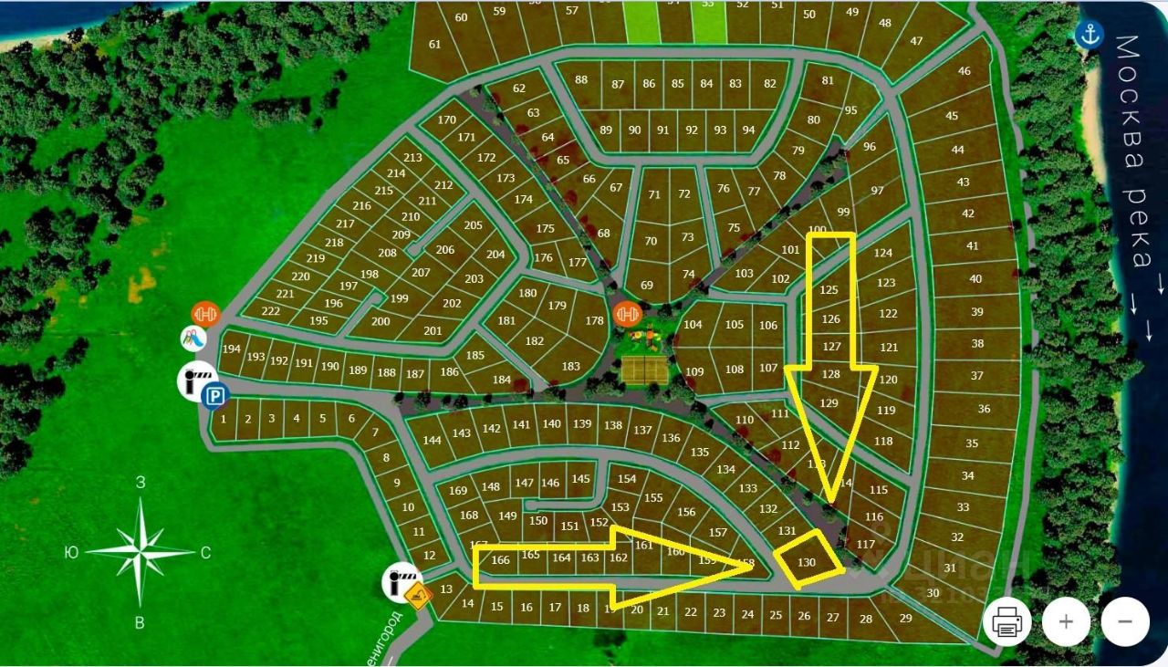 Участок 130, расположен в ТИХОЙ части КП Река-Река!! Посёлок сдан, всё готово!