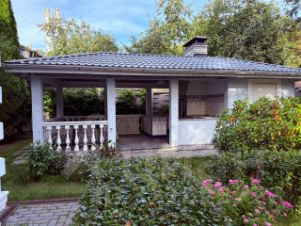 5. На участке также есть беседка с летней кухней и помещением для инвентаря . Мойка с горячей водой, казан, мангал, тандыр, электроплита. С летней мебелью.