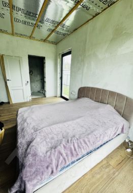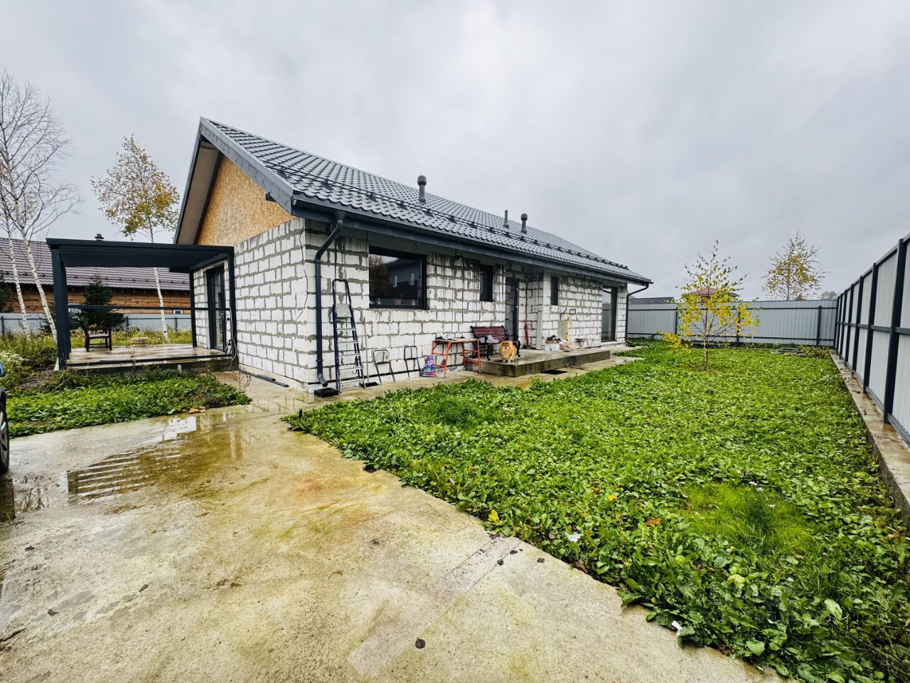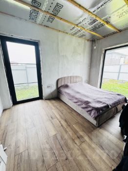 Из недоделанного: Стены готовы к поклейке обоев (обои под покраску есть, оставим новым хозяевам) , двери, потолки, второй санузел( установлена инсталляция, встроена душевая система hansgrohe) , пол залит, осталось положить плитку +мебель. В большом санузле есть место и вывод под ванну ( ванна есть, установка в процессе ) установлена душевая система hansgrohe , куплена и привезена из Германии. Встраиваемая техника ( Bosch, gorenje , beko - производство Евросоюз ) + японский холодильник Toshiba остаются в доме. Окна двухкамерные rehau . В доме положен керамогранит , в комнатах ламинат. В кухне-гостиной потолки 5,5 метров, в остальной части дома 2,8 .
