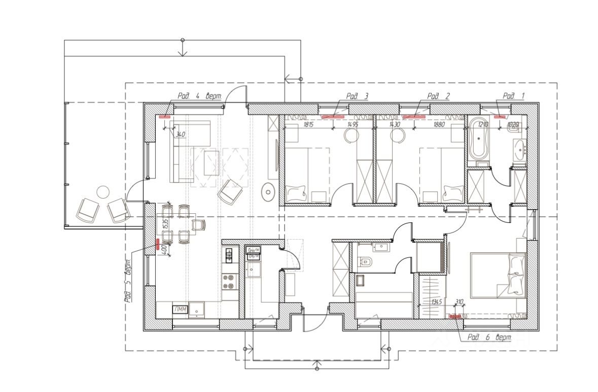 Фундамент утепленная шведская плита, стены из газоблока , толщина 400, покрыты ротбандом, штукатурить не надо, готовы к обоям, 3 спальни, 2 санузла, котельная, кухня-гостиная (1 мастер спальня со своим санузлом и углублением под гардероб, 2 спальня со своей гардеробной, 3 гостевая спальня). Веранда уличная , закрытая и открытая.