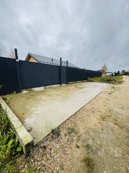 По участку : 10 соток, участок ровный, сухой, залитая бетоном стоянка как на участке так и за участком на 4 автомобиля, откатные ворота с итальянским механизмом.