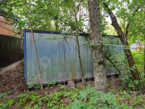 На участке растут сосны и берёзы, создающие атмосферу уюта.