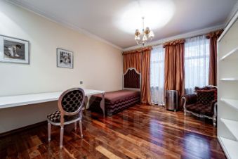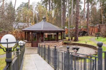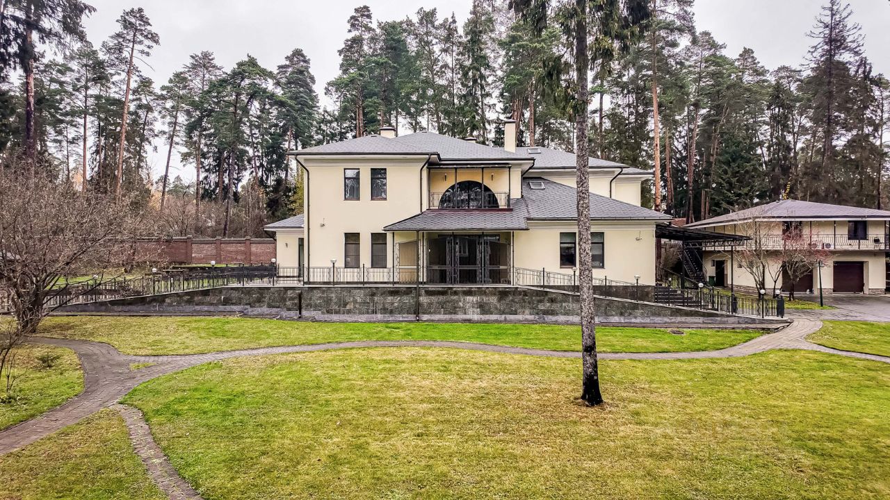 В доме семь спален, просторные общие зоны, видовые террасы. На цокольном этаже оборудован домашний кинотеатр, зона отдыха с сауной. На участке также расположен гараж на три автомобиля с двухкомнатной квартирой для помощников, просторная парковка.