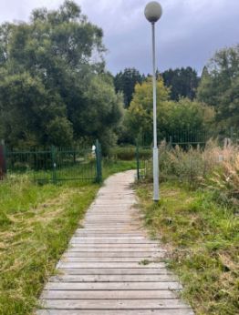 Территория поселка огорожена и охраняется. Все коммуникации — центральные. Есть собственный выход к реке и небольшому пляжу. Вдоль берега проложена пешеходная и беговая дорожка через сосновый лес.