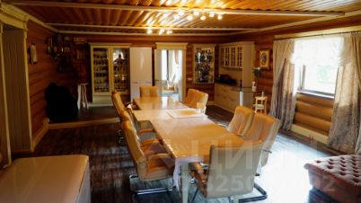 Уникальный бревенчатый дом гостиничного типа на берегу реки в живописном месте. Площадь 3-х этажного дома 358 м2, в стиле "Шале", с большой гостиной. В доме кухня, прихожая, 6 спален, каждая из которых с отдельным санузлом и душем (всего 7 санузлов), детская игровая, биллиардная, кабинет. Газ, электричество, скважина, септик "Танк". Благоустроенный участок с детской игровой площадкой, закрытая беседка с печкой на дровах, кухней, водой, зоной отдыха, зона барбекю. На участке расположен теплый гараж 70 м2, второй этаж гаража жилой 70 м2, отапливаемое хозяйственное помещение 60 м2.