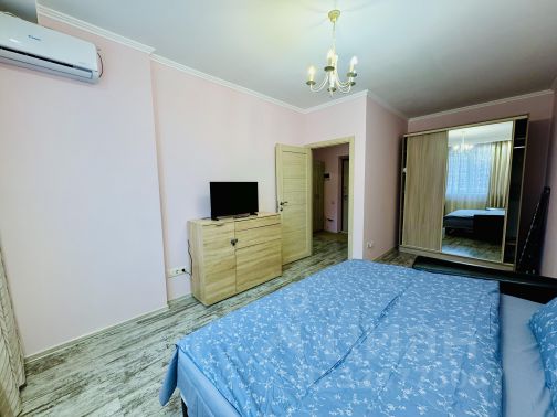 Квартира с качественным ремонтом. оборудована всем необходимым для проживания на короткий срок. Мебель вся гарнитурная: двуспальная кровать , шкаф, диван-кровать, комод. Встроенный кухонный гарнитур. Бытовая техника : ЖК-телевизор, холодильник, стиральная машина автомат, СВЧ-печь, эл.чайник, утюг и гладильная доска. Санузел совмещенный полностью облицован кафелем, мет/дверь, код, , wi-fi. Необходимый набор посуды, постельное белье. Балкон.