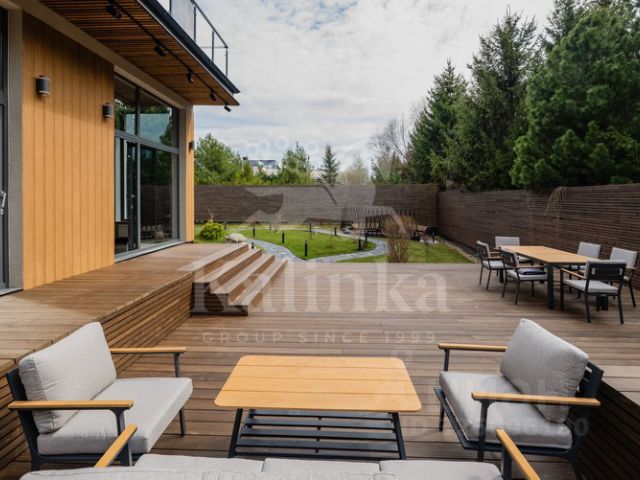 В доме выполнен дизайнерский современный ремонт, использованы исключительно европейские дорогостоящие материалы, кухня полностью оснащена техникой Kuppersbuch, встроенная и мягкая мебель от ведущих мировых производителей. Имеется канальное кондиционирование по всему дому, а также индивидуальное кондиционирование в каждой комнате - решение, которое позволяет создать свой уникальный климат. Первый этаж имеет уникальную спа-зону: бассейн с противотоком 11.5м х 4.5м, сауна и зоны отдыха. В цокольном этаже расположились несколько досуговых решений: отдельный зал с кинотеатром, оснащенный техникой Bowers&Wilkins, игровая комната с игральными столами и бильярдом, а также отдельное помещение с мини-тренажерным залом. В доме все центральные коммуникации: газоснабжение, электричество, водопровод, канализация. Оборудована котельная, установлено дорогостоящее оборудование De Dietrich. Полная автоматизация управления (освещение, климат) на базе премиальных интегрированных систем.