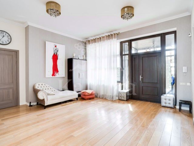 В отделке использованы дорогостоящие и натуральные материалы, напольное покрытие — паркет.