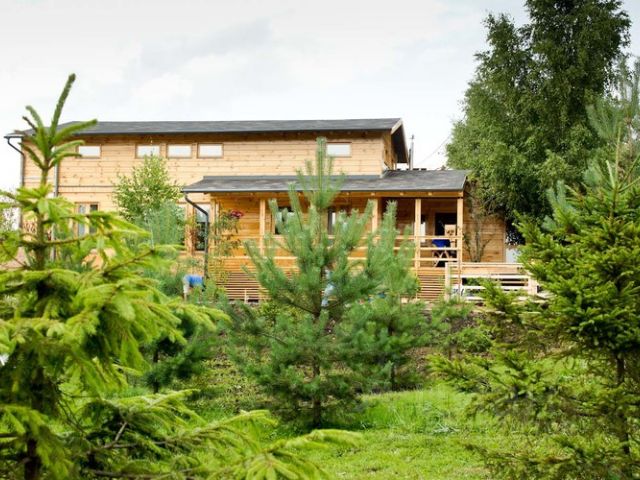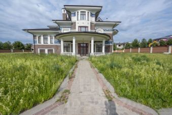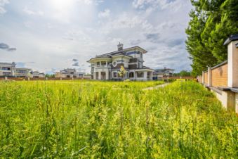 На участке выполнен ландшафтный дизайн с зонированием: зеленые лужайки, открытая веранда с барбекю, фруктовый сад, аккуратный огородик, теплица, погреб, домик персонала, парковка на 4-6 автомобилей. Зеленая изгородь из хвойных деревьев укрывает усадьбу от посторонних глаз.