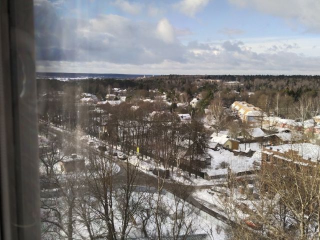 Из окна вид на сосновый лес и на улицу. Тихая сторона дома. Хорошие соседи.