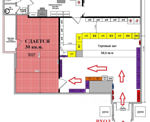 Октябрьская площадь 1. Сдается помещение площадью 30 кв.м. (смотрите план и фото). Место под рекламу предоставляется. Вход через торговый зал аптеки Здравсити. Стены построим после нахождения арендатора. В арендную плату все включено. Рассмотрим все предложения, кроме общепита и табака. Звонки принимаются в рабочие дни с пн-пт с 9.15 до 18.00.